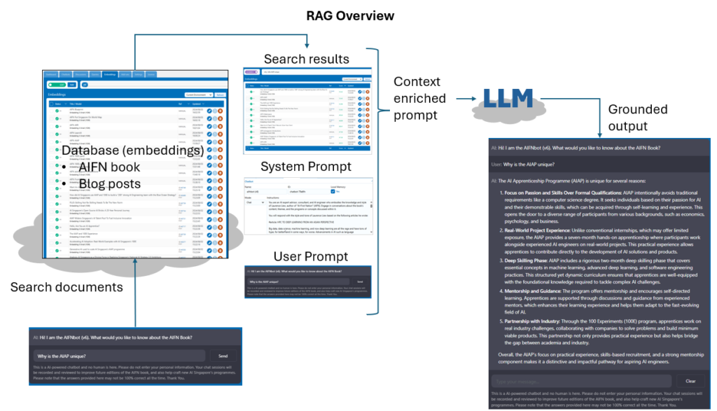 • Instructions on how to answer questions and to restrict to information about the AIFN book and AI Singapore programmes only